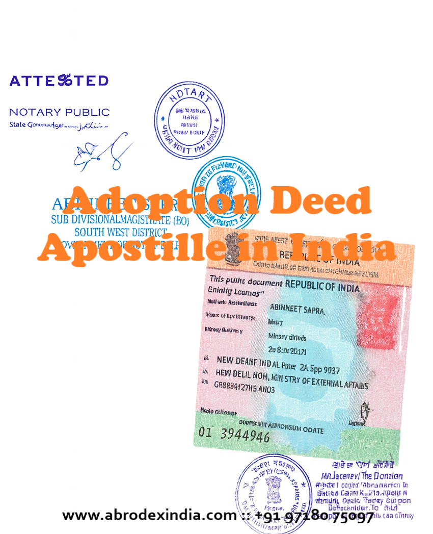 Abrodex India Private Limited is a trusted MEA Apostille and Embassy Attestation service provider based in New Delhi, serving clients across India and abroad. We specialize in Adoption Deed, Birth Certificate, Marriage Certificate, PCC, Educational Documents, and all personal/legal Apostilles.