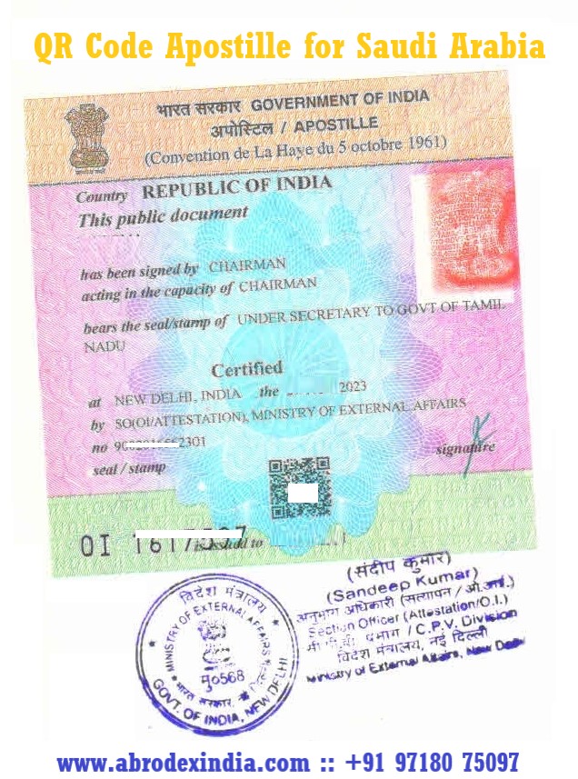 Abrodex Consultancy services is one of the reputed service providers for Certificate Apostille for Saudi Arabia in India. We complete any kind of Certificate Apostille from MEA after the Attestation of state Home Department / General Administrative Department /GAD, Regional Attestation Centre /RAC etc. We also complete the Birth Certificate Apostille for Saudi Arabia through alternative methods. Please get in touch with us and enjoy the excellent services. When you require your Certificate Apostille for Saudi Arabia, contact us and we will provide our best services to get it done at your door step.