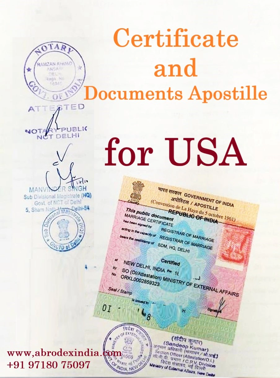 Abrodex Consultancy services is one of the reputed service providers for Certificate Apostille for USA in India. We complete any kind of Certificate Apostille from MEA after the Attestation of state Home Department / General Administrative Department /GAD, Regional Attestation Centre /RAC etc. We also complete the Birth Certificate Apostille for USA through alternative methods. Please get in touch with us and enjoy the excellent services. When you require your Certificate Apostille for USA, contact us and we will provide our best services to get it done at your door step.