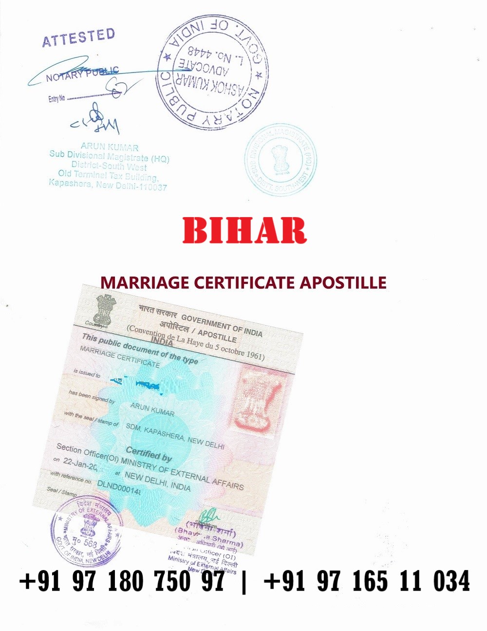 Don’t let your important marriage document stall your overseas plans. Contact us today for Apostille of your Bihar-issued Marriage Certificate — we’ll guide you end-to-end, handle the complicated formalities, and deliver your apostilled certificate fast and reliably.