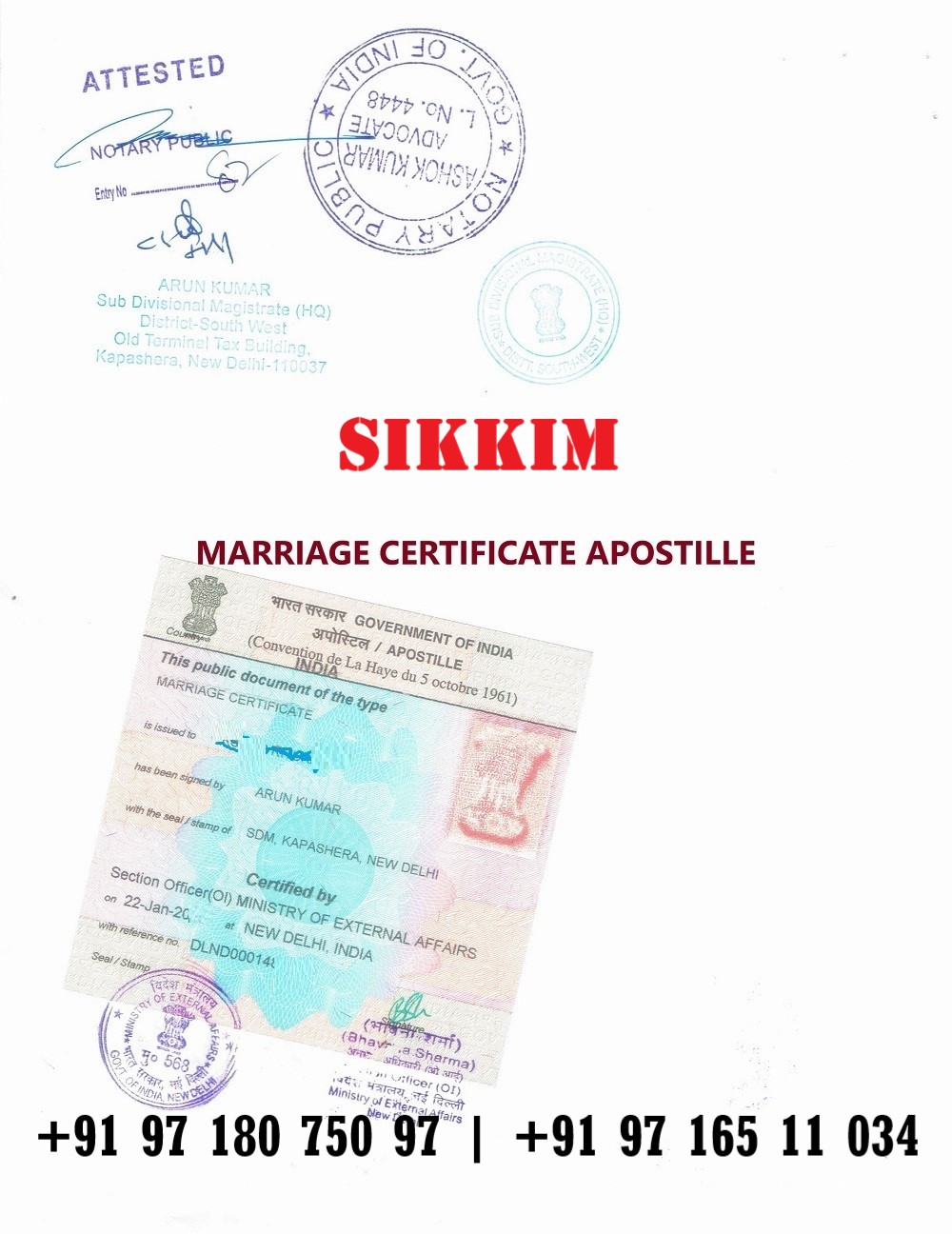 If you hold a marriage certificate issued in the state of Sikkim and intend to use it abroad for spousal visa, immigration, employment, education or any foreign jurisdiction it is imperative to obtain an Apostille from Ministry of External Affairs (MEA). Because India is a party to the Hague Convention of 5 October 1961, once apostilled, your document will be recognised in all member countries without further embassy/legalisation.