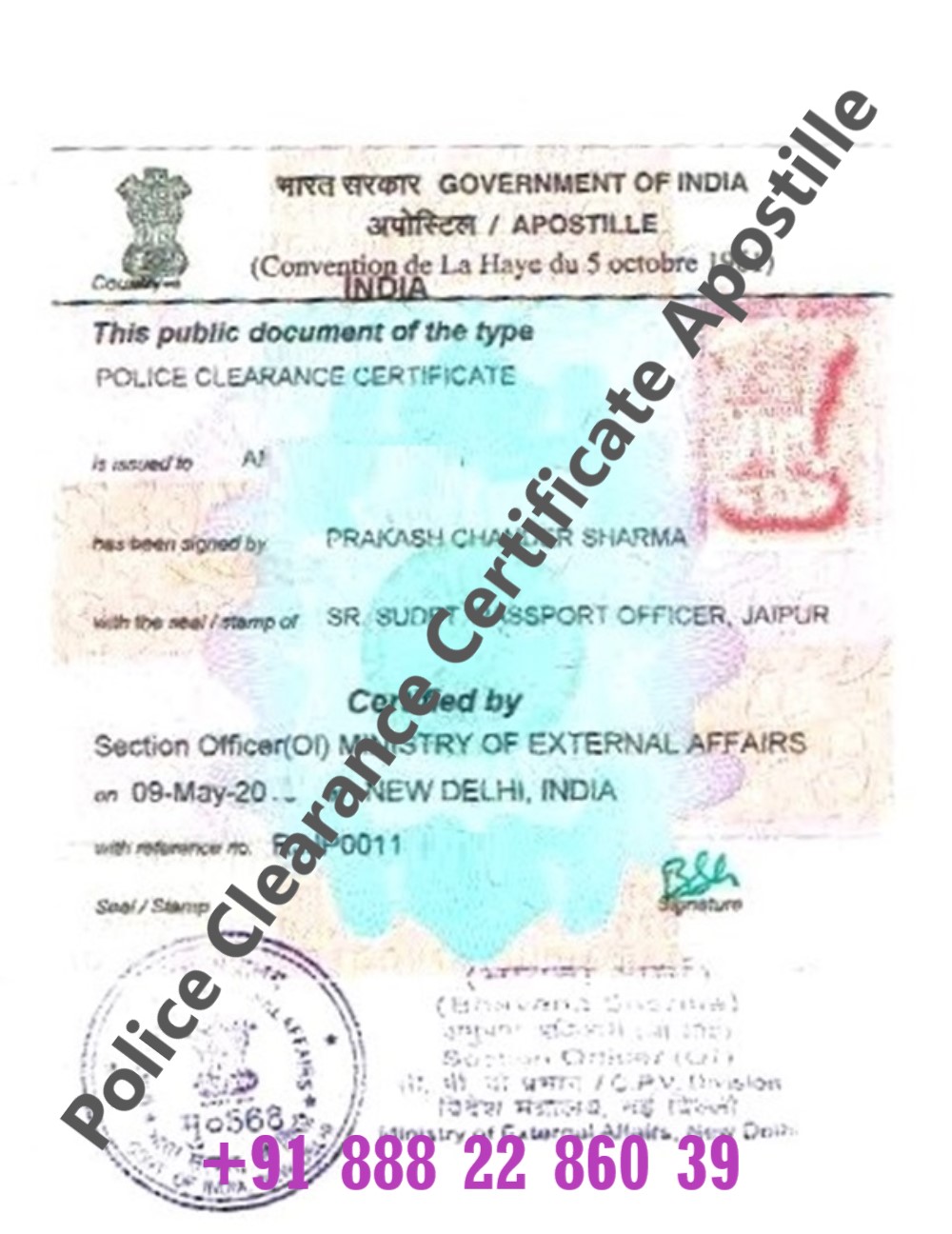 A Police Clearance Certificate/PCC is a government-issued document that confirms the applicant’s criminal background status. For global verification, foreign authorities require the PCC to be authenticated by the Ministry of External Affairs/MEA through Apostille.