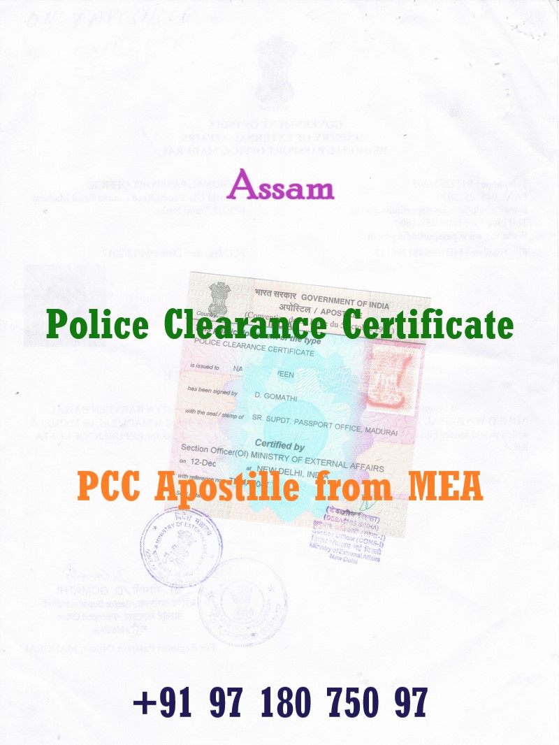 Assam issued Police Clearance Certificate/PCC Apostille for HCC Country from Ministry of External Affairs (MEA), New Delhi, India