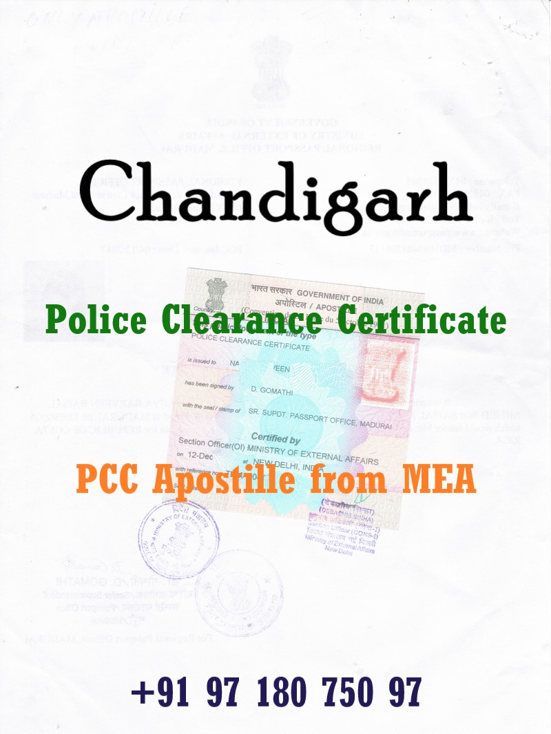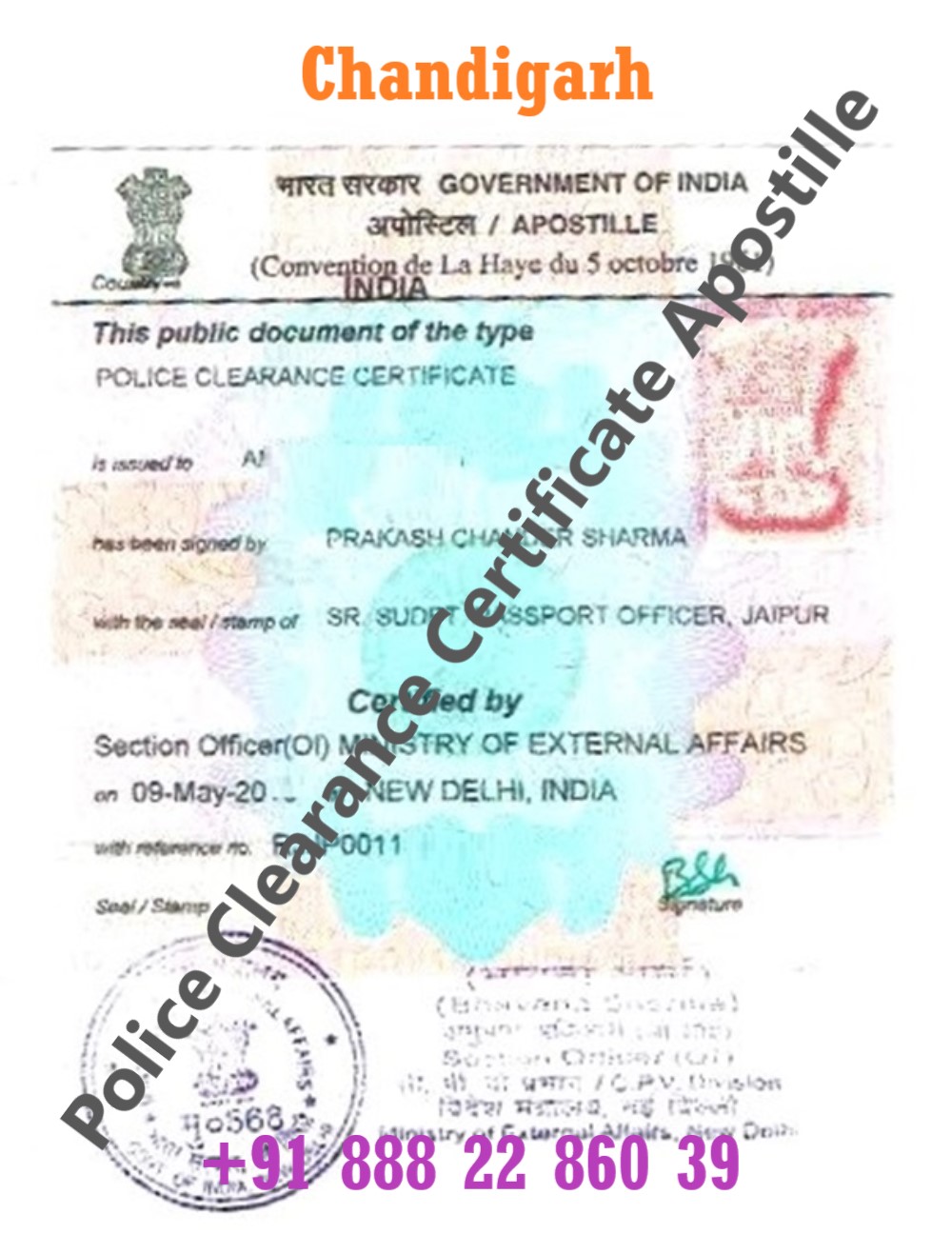 A Police Clearance Certificate (PCC) also known as No Criminal Record Certificate issued in Chandigarh (Chandigarh) is an important document required for immigration, employment abroad, long-term visas, residency permits, work permits, global background verification, and various foreign legal processes. To be legally accepted outside India, a Chandigarh-issued PCC must be Apostilled by the Ministry of External Affairs (MEA), Govt. of India.
