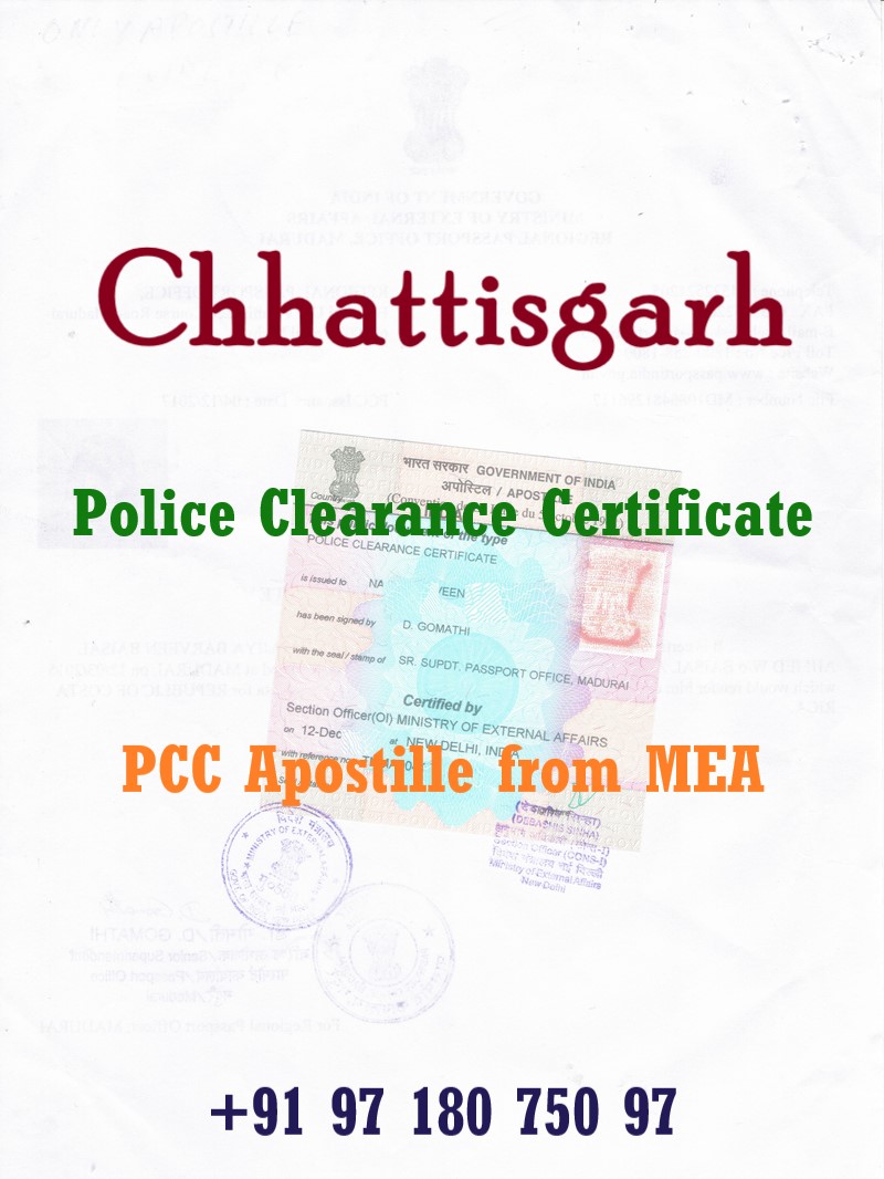 A Police Clearance Certificate (PCC) also known as No Criminal Record Certificate issued in Chhattisgarh (Chhattisgarh) is an important document required for immigration, employment abroad, long-term visas, residency permits, work permits, global background verification, and various foreign legal processes. To be legally accepted outside India, a Chhattisgarh-issued PCC must be Apostilled by the Ministry of External Affairs (MEA), Govt. of India.