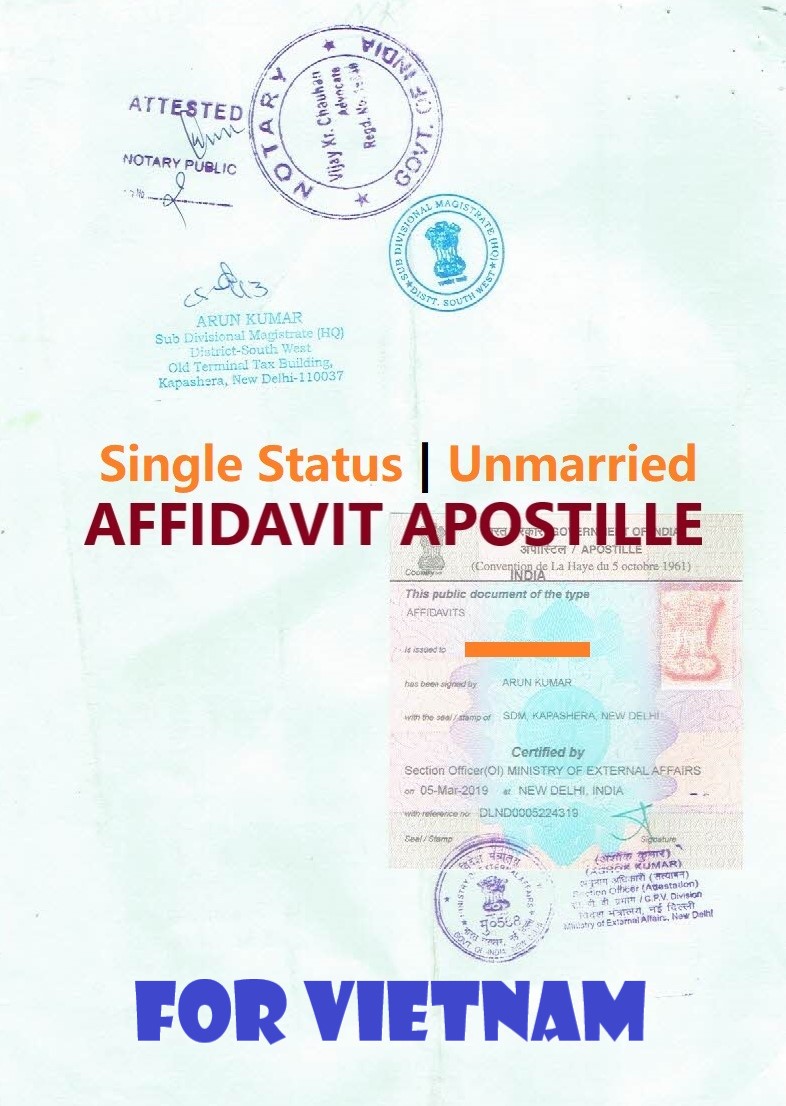 We provide Single Status / Bachelorhood Certificate / Unmarried Affidavit Apostille for Vietnam in India. When you require an Unmarried Affidavit Apostille Attestation, contact us and we will provide our best services to get it done at your door step.
